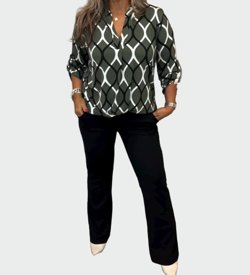 Bluzo-kosulja z elegantnim krojem in modernimi detajli.