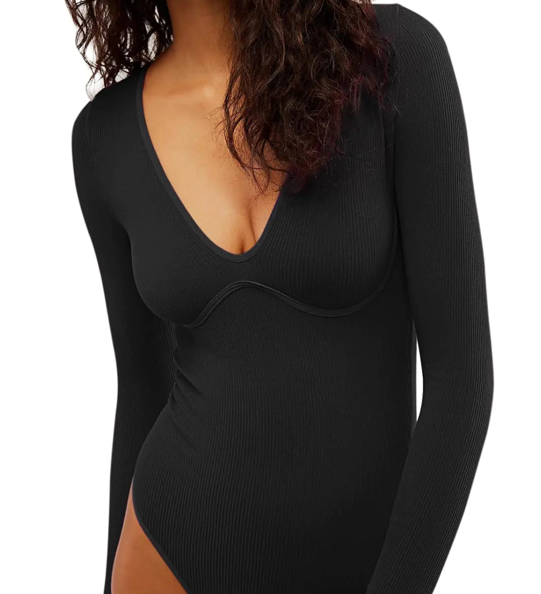 Eleganten bodi z dolgimi rokavi in V-izrezom