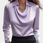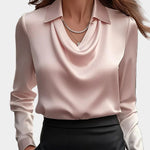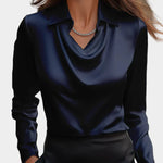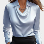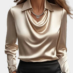 Elegantna bela satenska bluzna s drapiranim izrezom