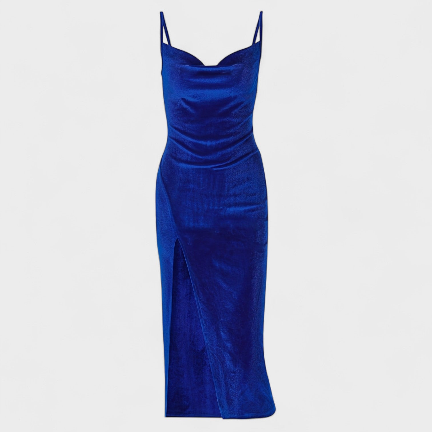 Odkrijte obleko Gabriela , ki združuje senzualnost in izstopajočnost v vsakem ovinku. Njen mehak žamet in subtilno drapiran dekolte vas bosta očarala, medtem ko je bočni razporek dodal pravo mero drznosti.