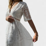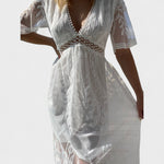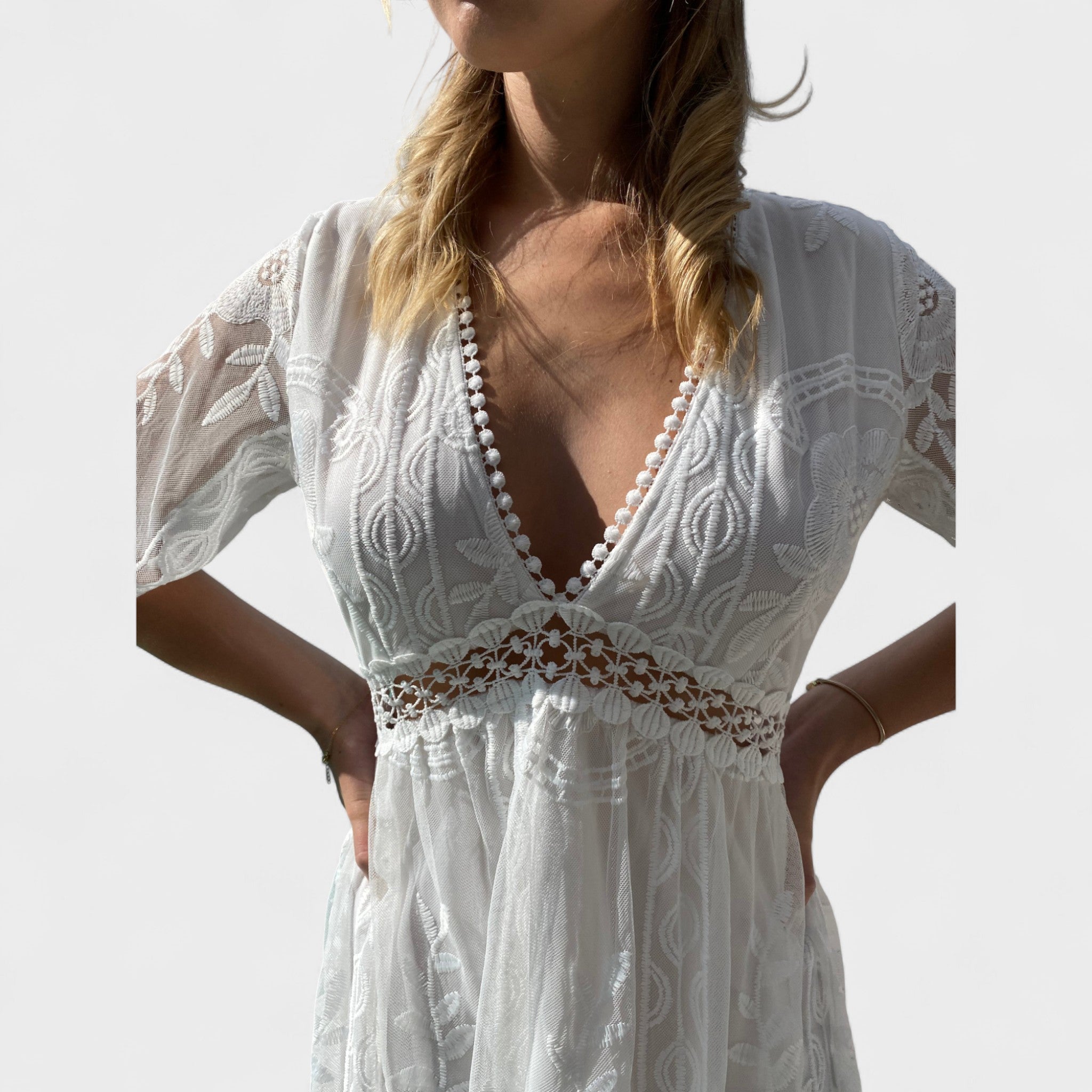 Odkrijte boho čipkasto obleko , ki združuje rafiniranost in sproščenost. Njena lepršasta silhueta in čudoviti čipkasti detajli jo naredijo idealno izbiro za poletne večere, posebne dogodke ali romantične sprehode ob morju.