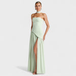 Odkrijte popolno obleko za pritegnitev pogledov in osvajanje na vsakem koraku. Njena brezramena zasnova in stranski razporek združuje senzualnost in sofisticiranost , kar jo dela idealno izbrati za dogodke, kjer ste vi v središču pozornosti.