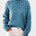 Čudovita pletena struktura naredi ta udoben pulover idealen za igro plastike v hladnejših mesecih, saj vas drži tople brez kompromisov glede vašega sloga.