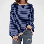 Uživajte v udobju in stilu s tem modnim puloverjem z dolgimi rokavi in ​​okroglim izrezom, idealnim za vsakodnevne kombinacije. Klasičen črtast vzorec nikoli ne gre iz mode, sproščen kroj pa zagotavlja maksimalno udobje.