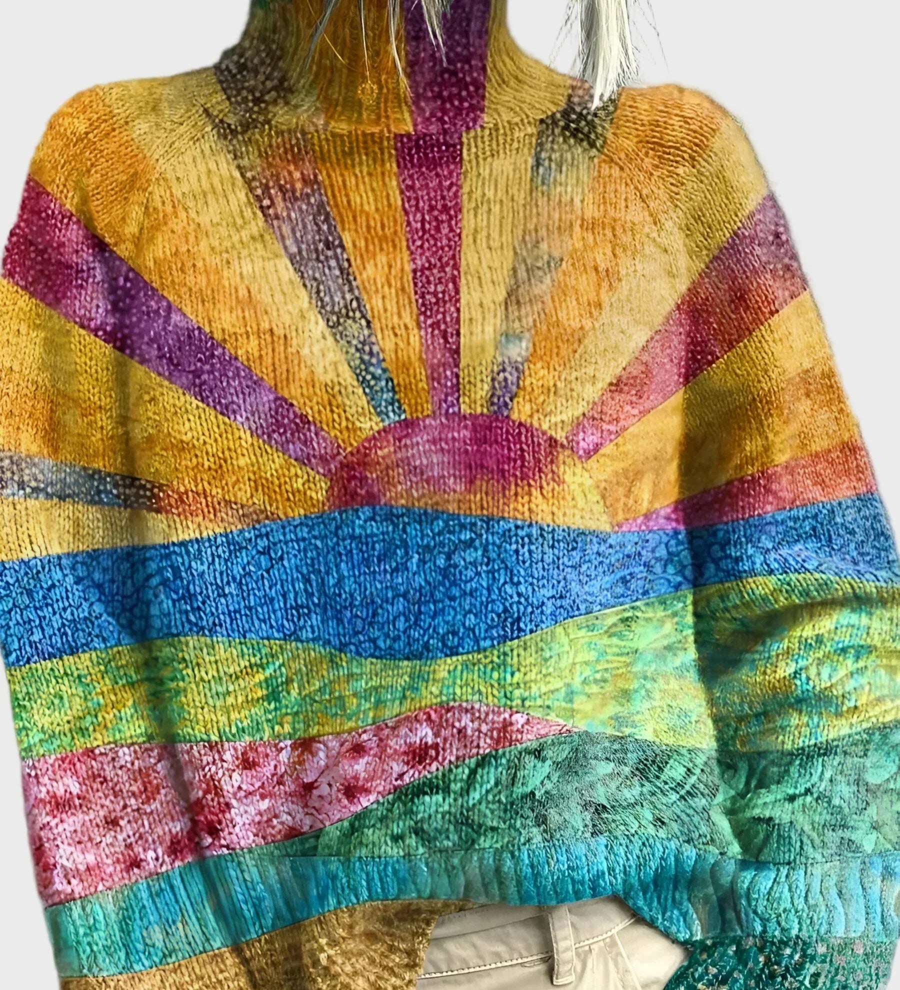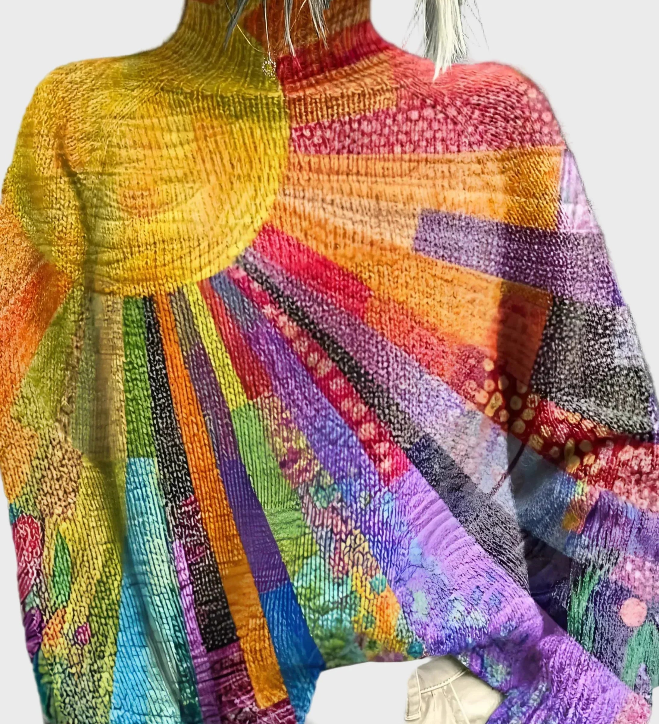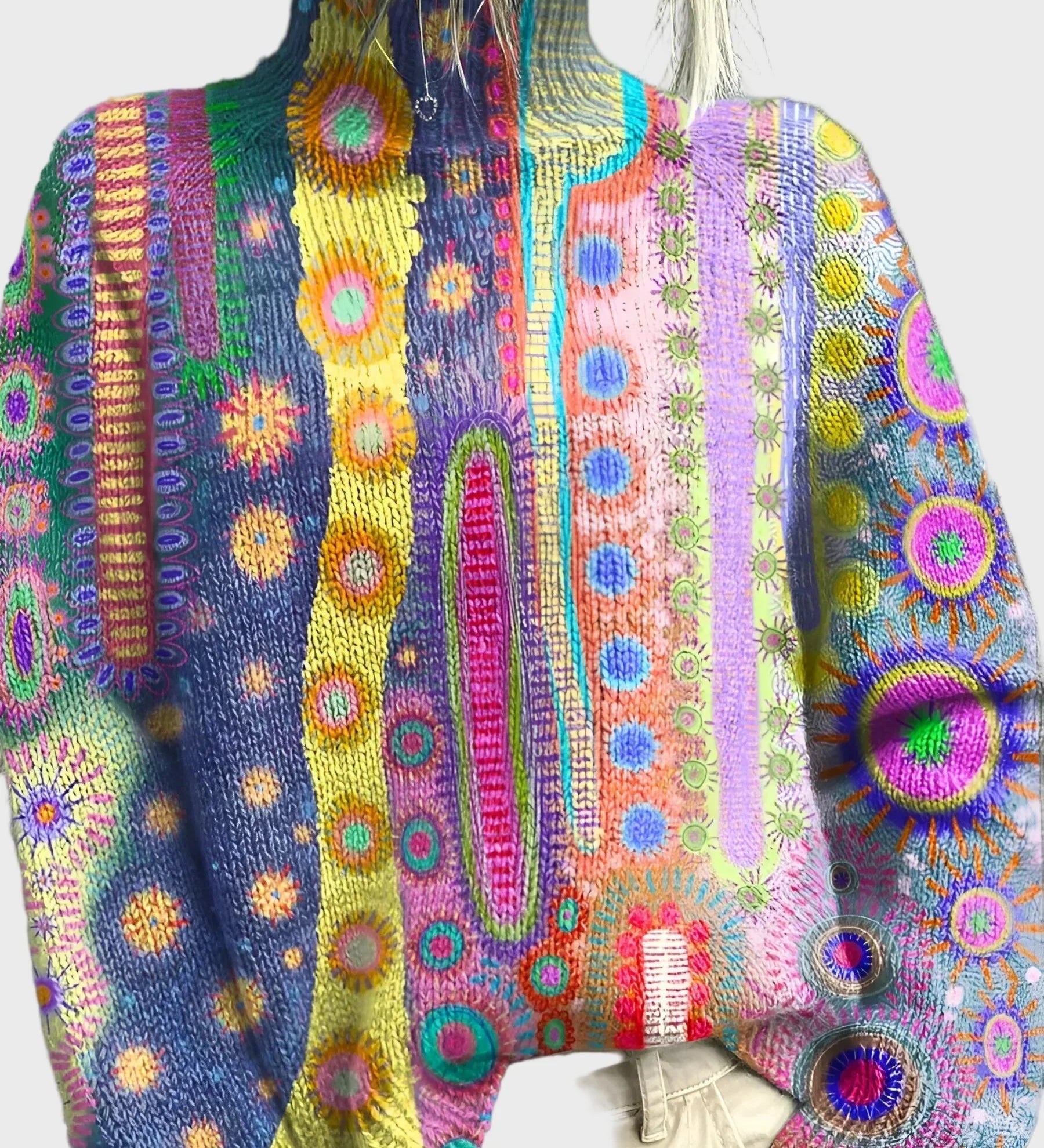 Pleteni Džemper z Visokim Ovratnikom in Unikatnim Uzorkom