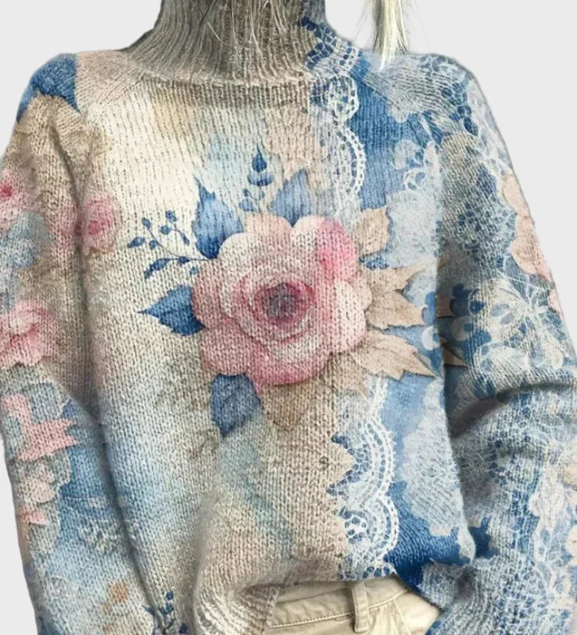 Elegantna – Pletena telovnika z rožastim vzorcem