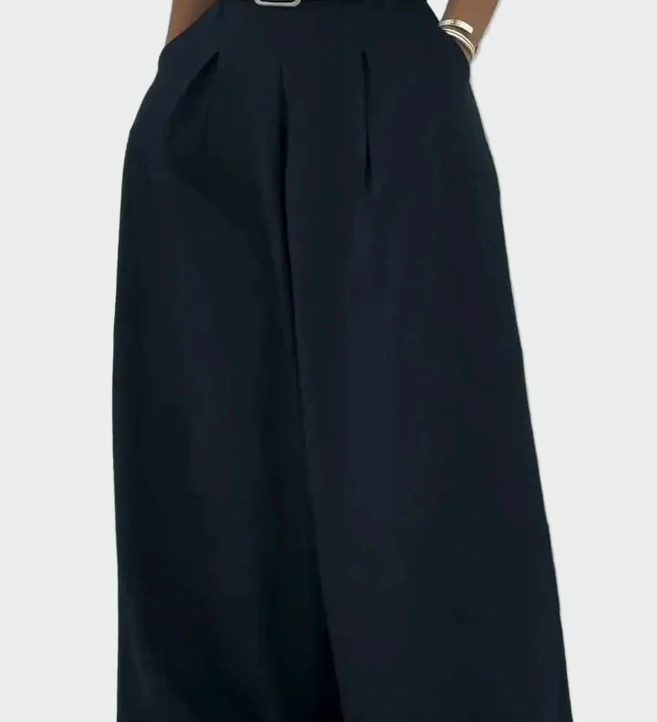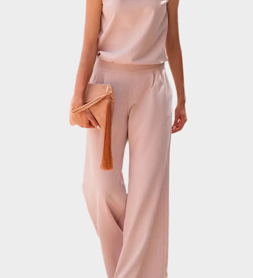 Lahka obleka s širokimi hlačami in rahlo krojenim topom