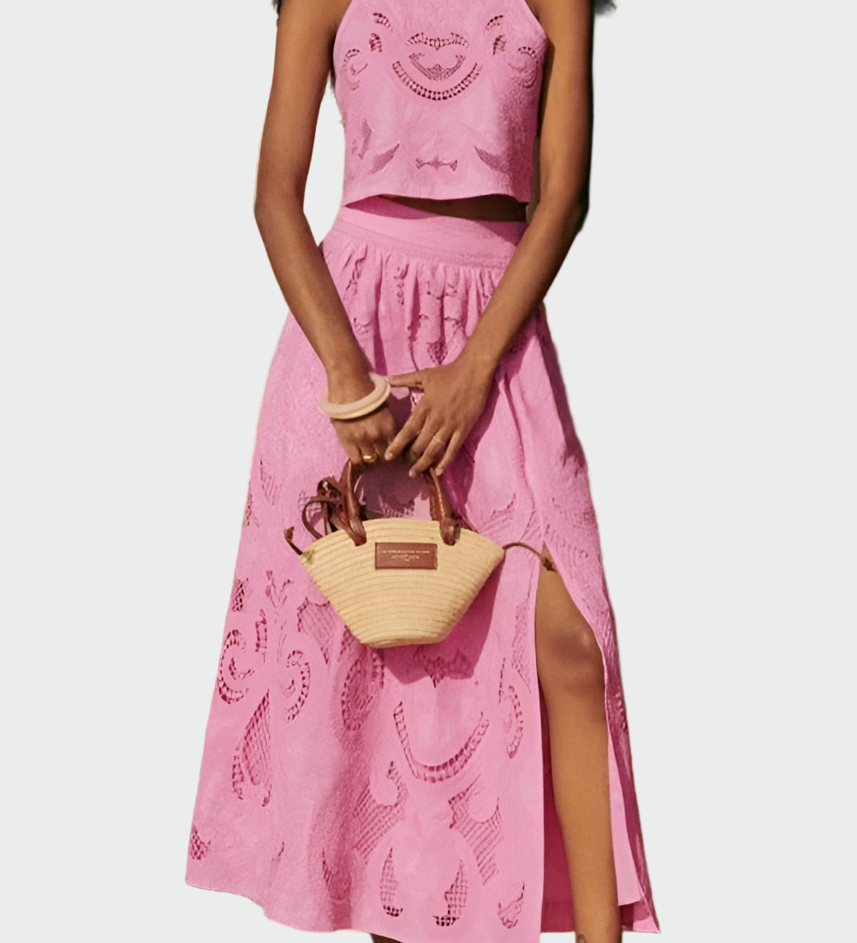 Široka bluzo in hlače z razrezom – dvodelni komplet iz šifona