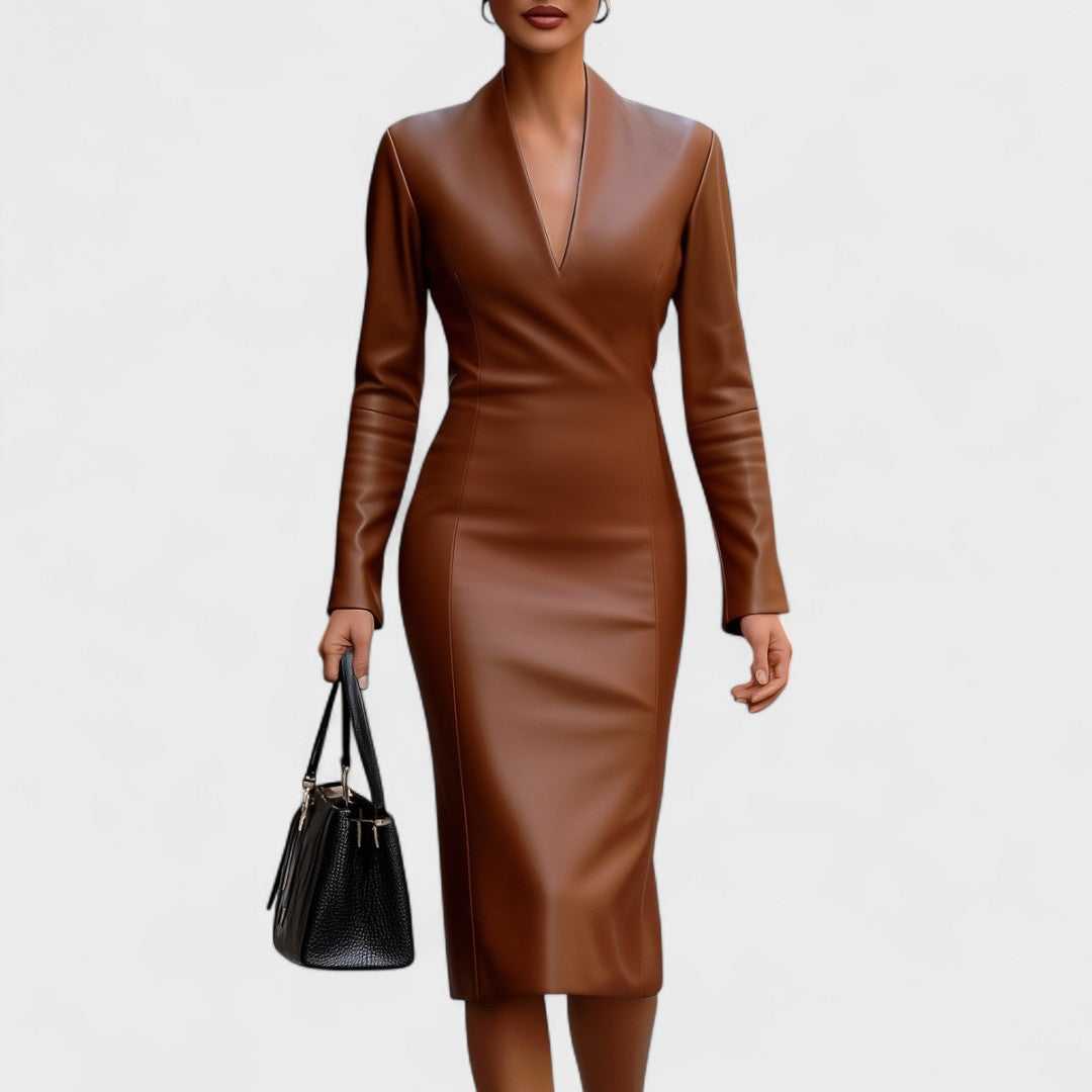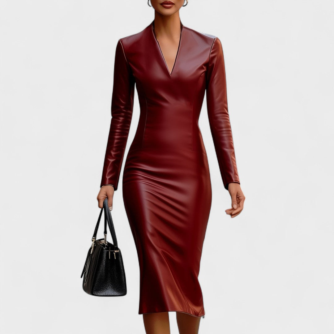 Lada - Oprijeta obleka iz umetnega usnja" lahko prepišemo takole: "Lada - Oblikovana obleka iz umetnega usnja