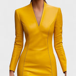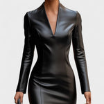 Oprijeta obleka iz umetnega usnja je idealna izbira za ženske, ki želijo izžarevati samozavest in sofisticiranost. S modernim krojenjem , ki sledi liniji telesa, ta obleka poudarja postavo in zagotavlja drzen, luksuzen videz zahvaljujoč visokokakovostnemu materialu.