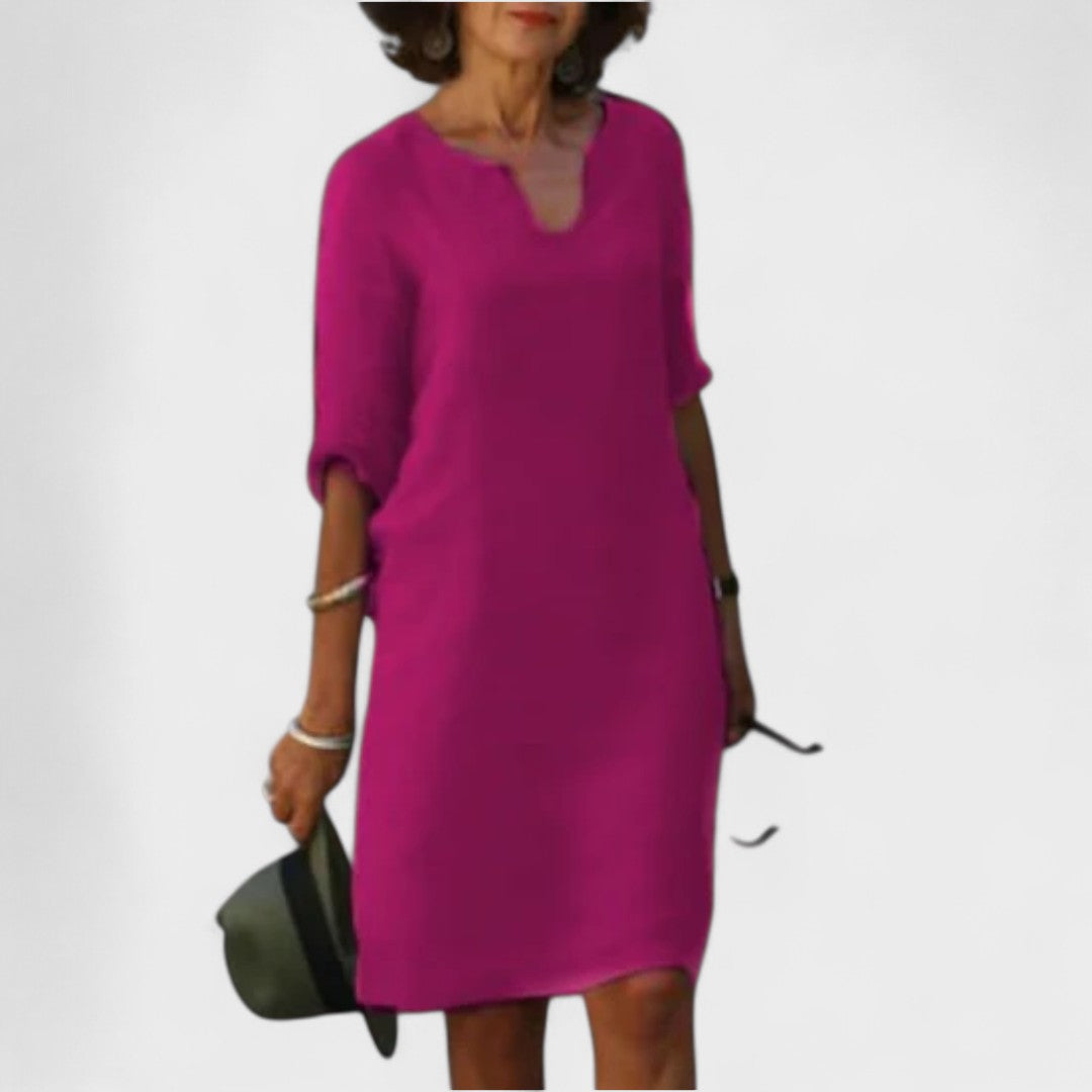 Odkrijte preprosto eleganco s to obleko, ki se obnaša s sodobnim krojem, primerna za vsako postavo. Njena lahka in sproščena zasnova je idealna za dnevne in večerne kombinacije.