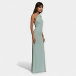 • Večerni videz s čipkastim vrhom, ki se veže okoli vratu, in draperijskim vrhom.