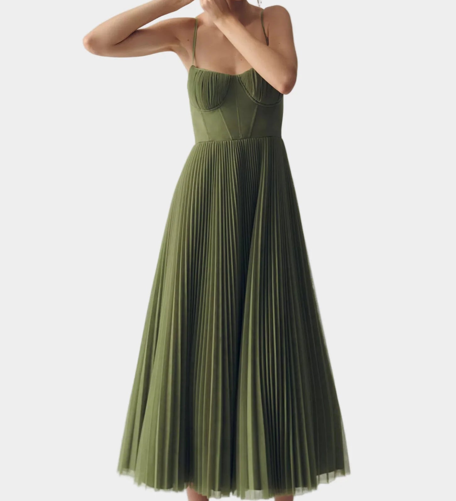 Elegantna obleka s plisiranim vzorcem in nenadobojnim dizajnom.