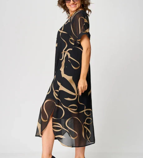 Haljina s cvetličnim vzorcem in kratkimi rokavi
