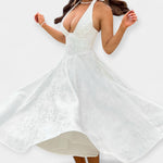 Midi obleka z odprtimi hrbti in korsetnim dizajnom