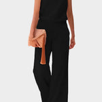 Ta komplet izžare svežino, udobje in ženskost. Z nežno rožnato barvo in sproščenim krojem je ta videz idealen za poletne izhode, koktajle ali sproščene trenutke na dopustu.