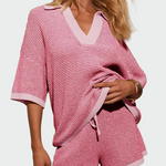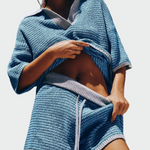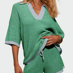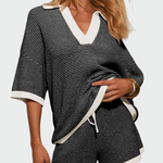 Komplet "Udobje Bež" združuje sproščen stil in praktičnost. Mehka tekstura in elastičen kroj zagotavljajo udobje, medtem ko sodoben dizajn omogoča nositi komplet tako za sproščene kot elegantne priložnosti.
