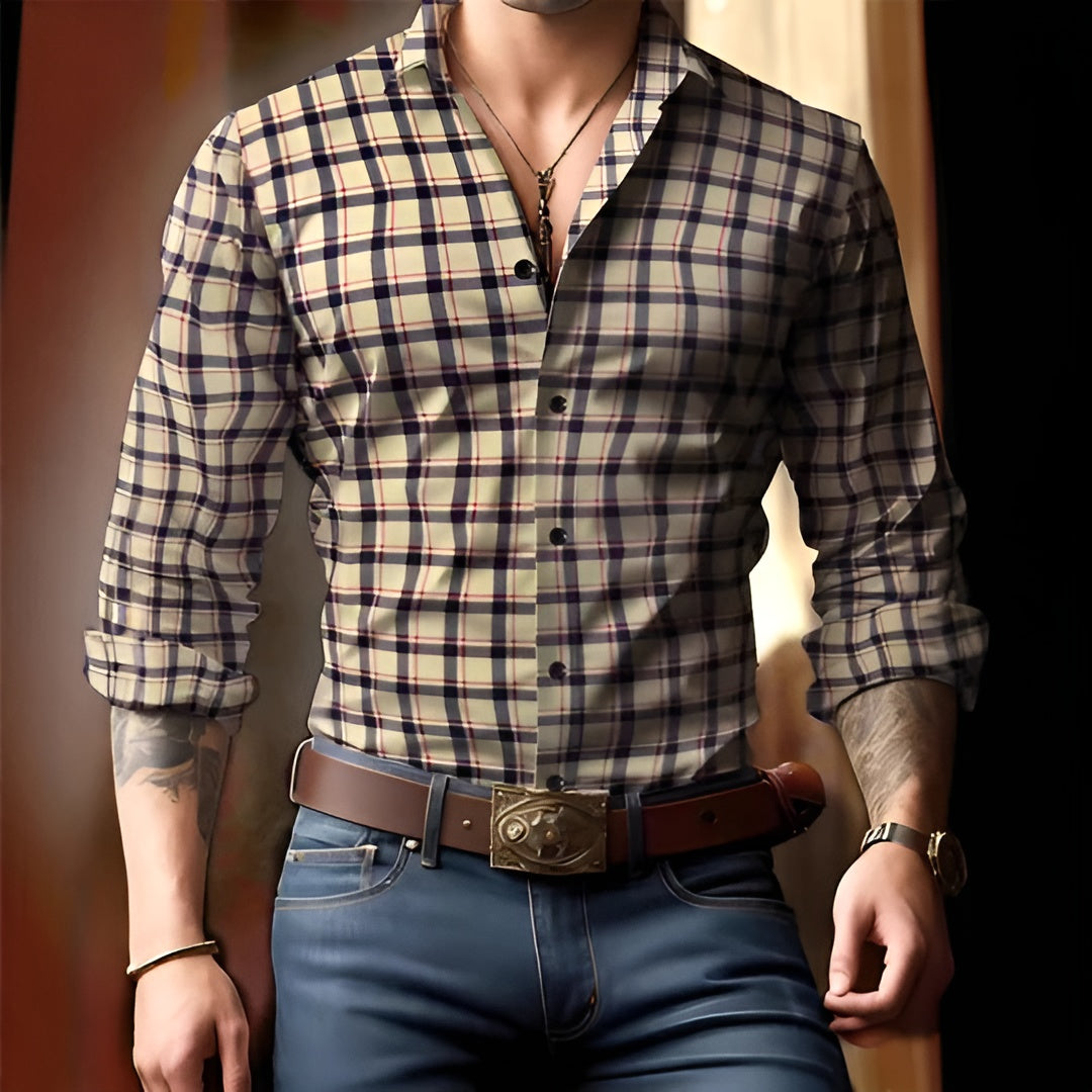 Det klassiske ternede mønster og den moderne pasform giver dig et selvsikkert og velklædt udtryk. Stoffet er let og åndbart, så du holder dig frisk – også på lange arbejdsdage.