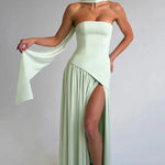 Ta maksi kril brez naramnic izžareva nenadobno eleganco in ženstvenost.